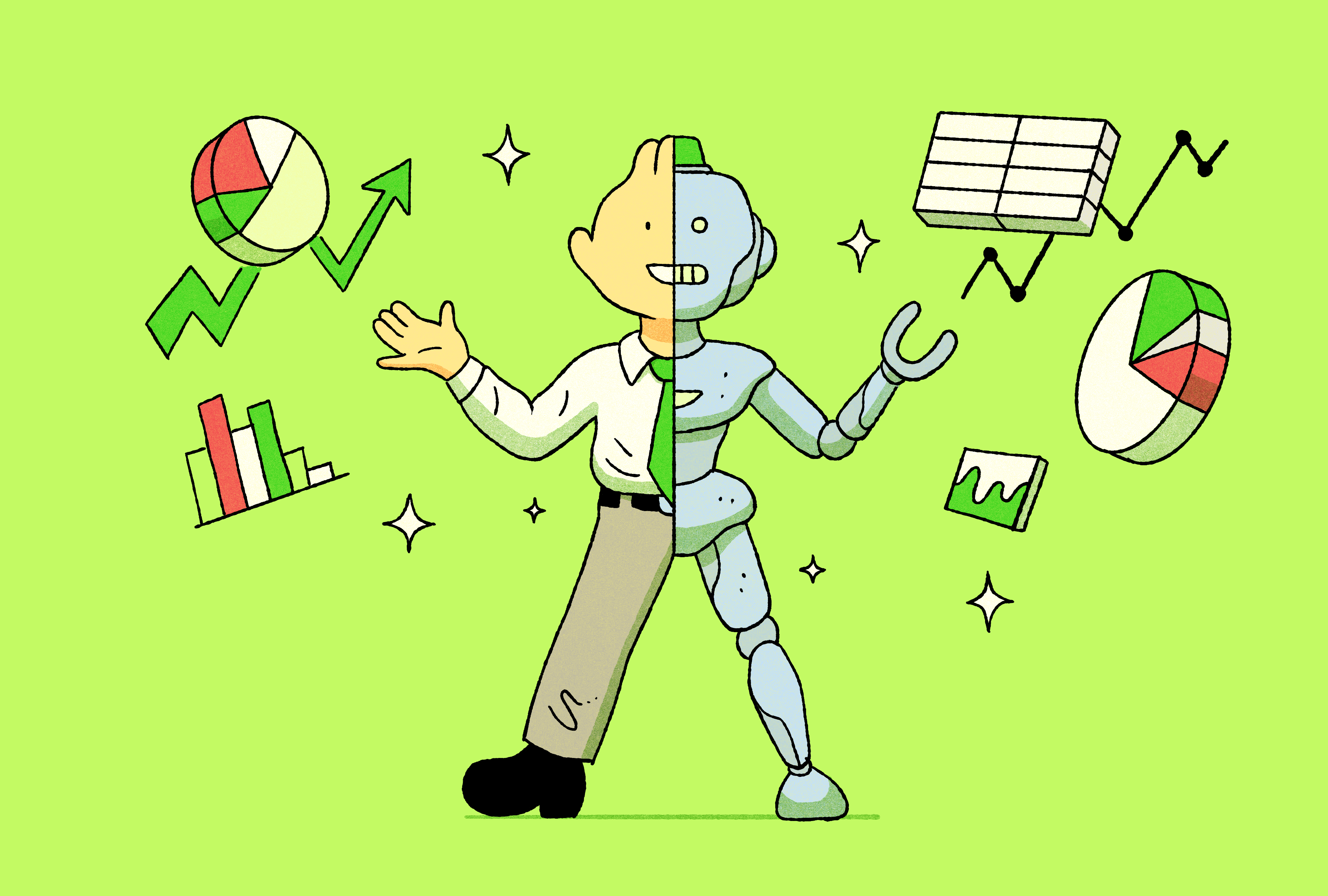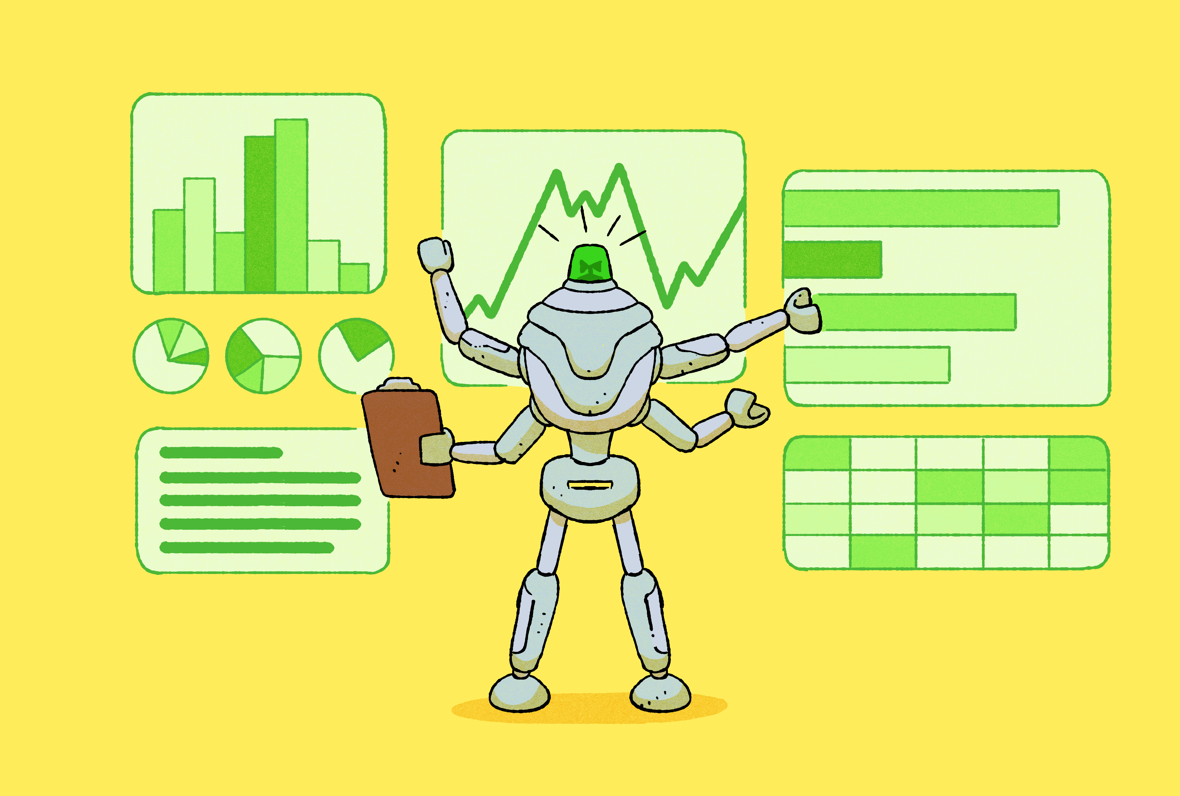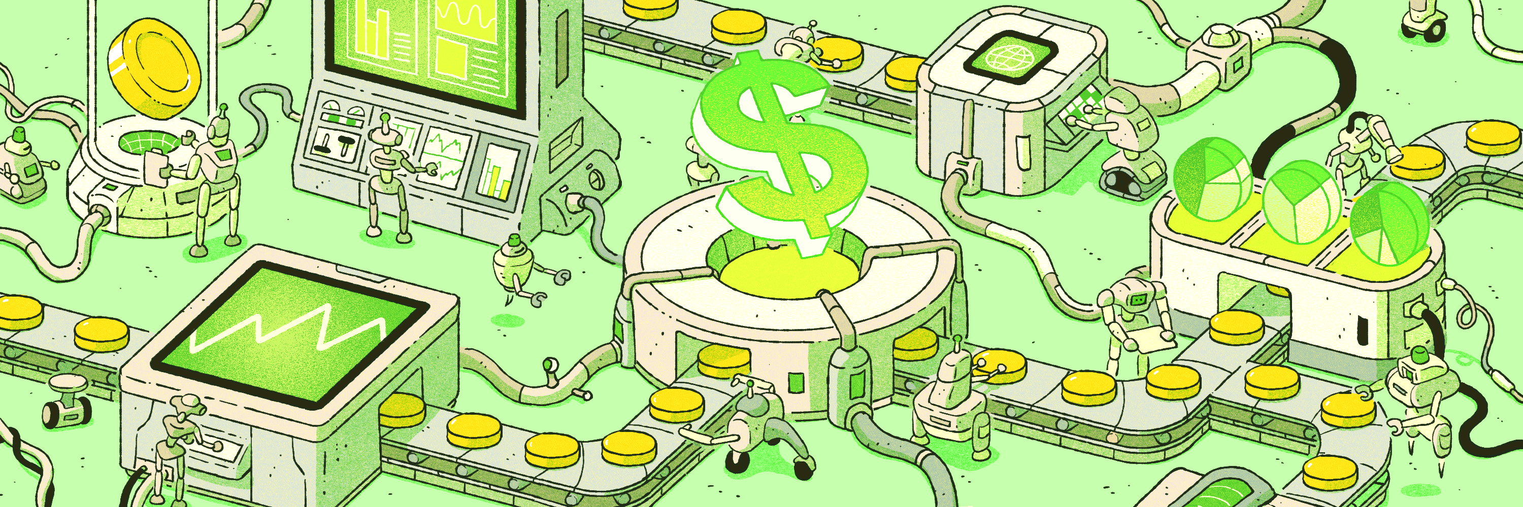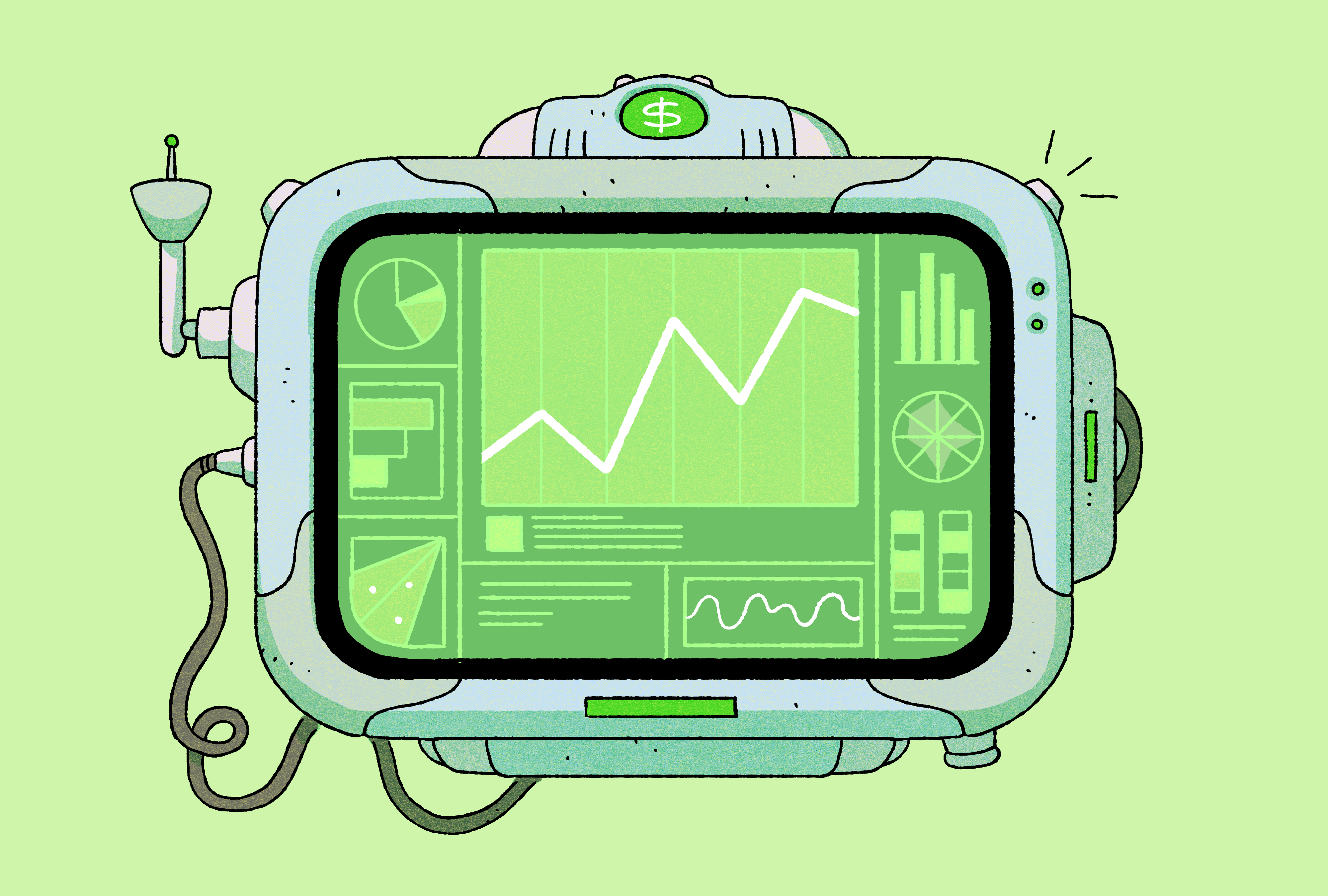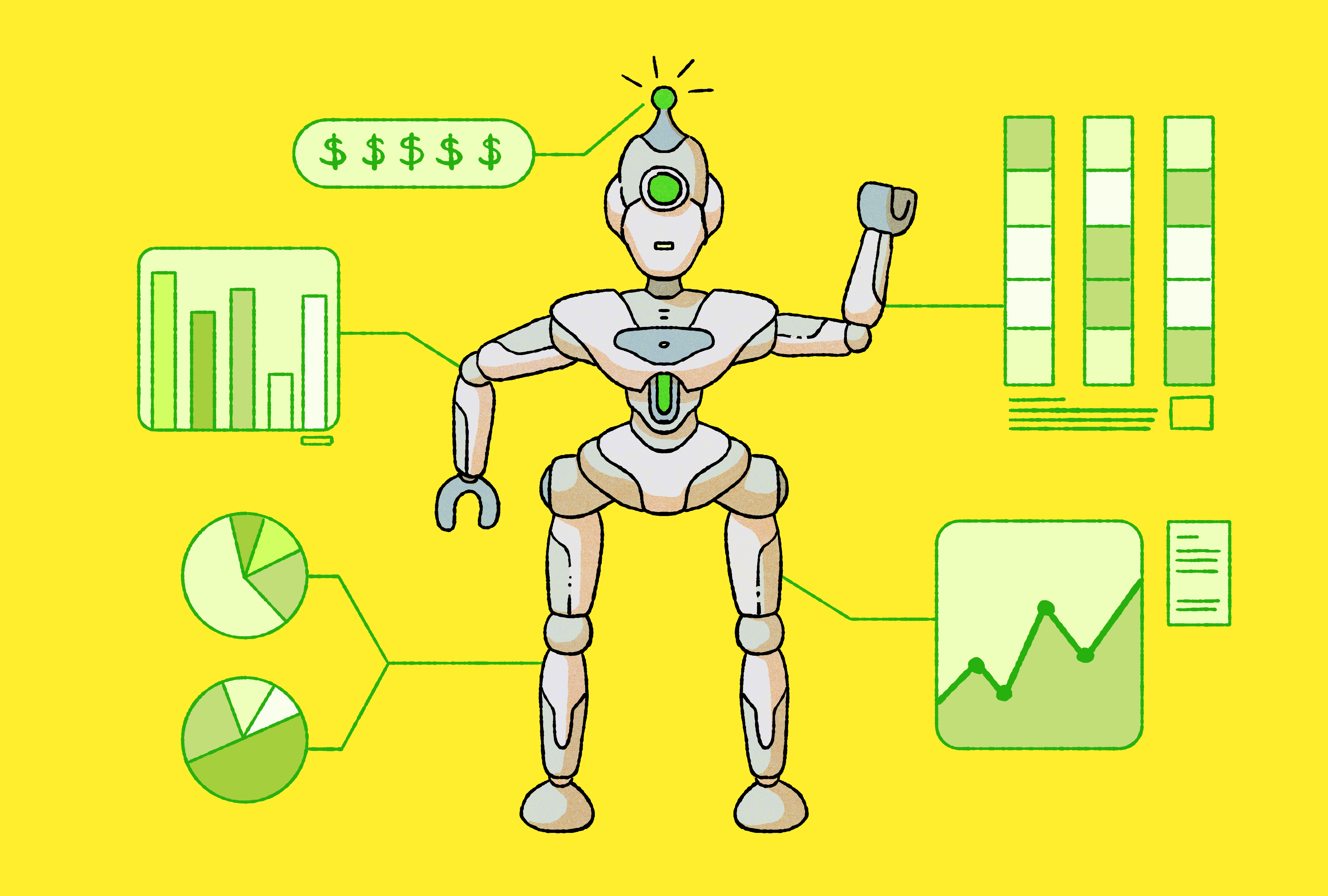 A selection of illustrations for a guide about Robo-advisors.
